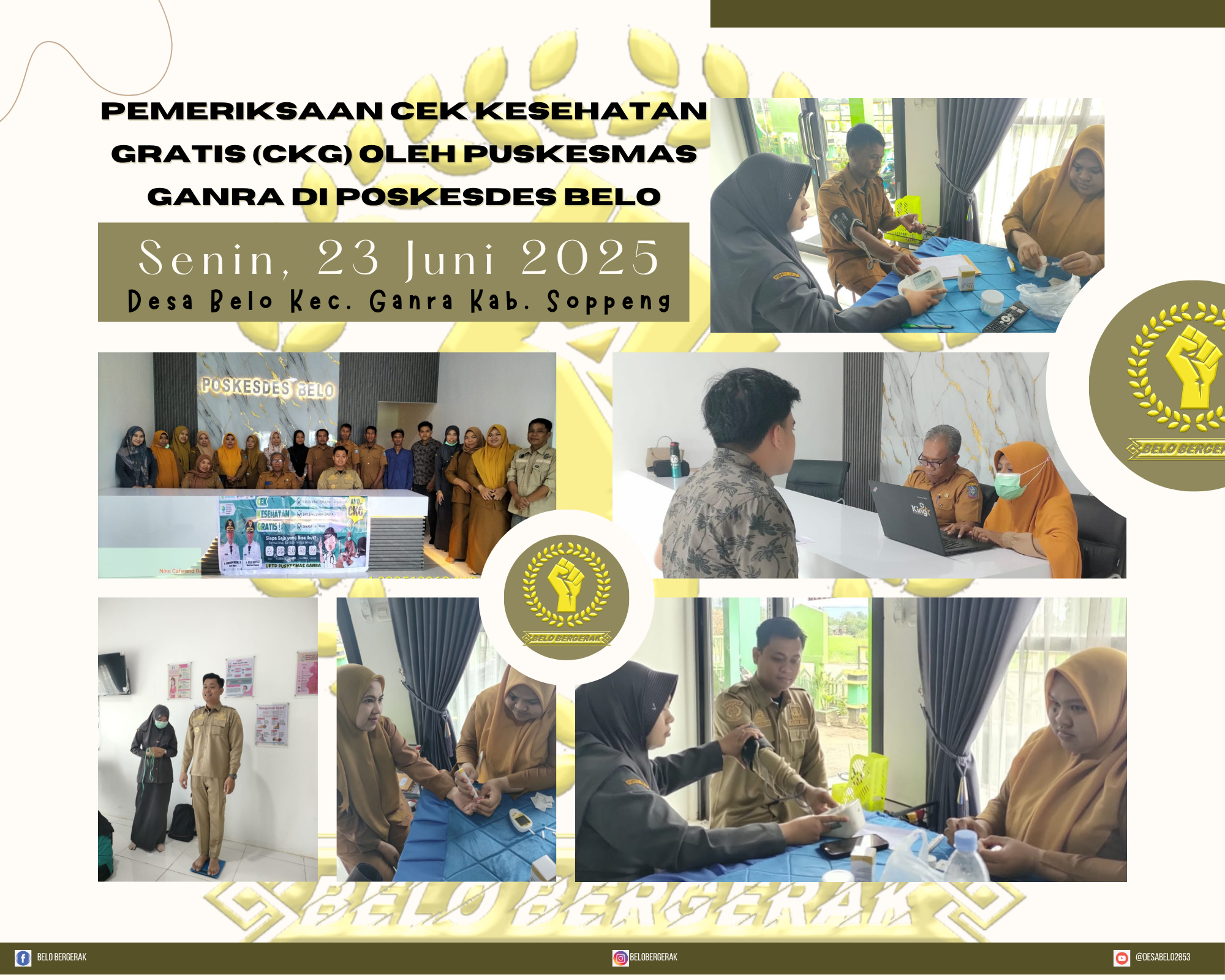 Belo, Soppeng – Dalam rangka meningkatkan kesadaran masyarakat akan pentingnya menjaga kesehatan dan mendeteksi dini potensi penyakit, Puskesmas Ganra bekerja sama dengan Pemerintah Desa Belo melaksanakan kegiatan Cek Kesehatan Gratis (CKG) bagi masyarakat Desa Belo, Kecamatan Ganra, Kabupaten Soppeng. Kegiatan ini dilaksanakan pada [23 Juni 2025] dan bertempat di [POSKESDES BELO.