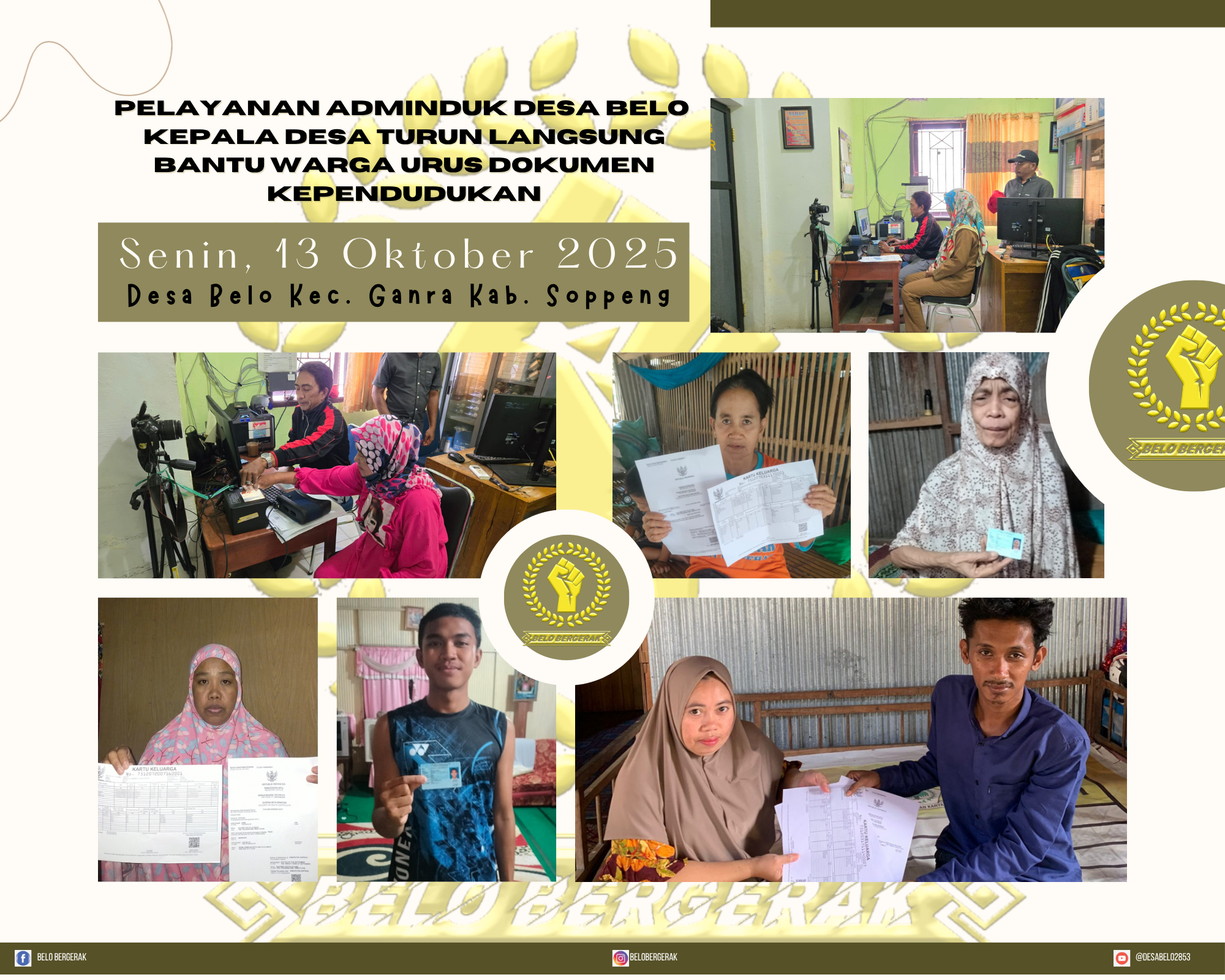 Dalam upaya meningkatkan kualitas pelayanan administrasi kependudukan (Adminduk), Pemerintah Desa Belo, Kecamatan Ganra, Kabupaten Soppeng terus berinovasi memberikan pelayanan terbaik bagi masyarakat.