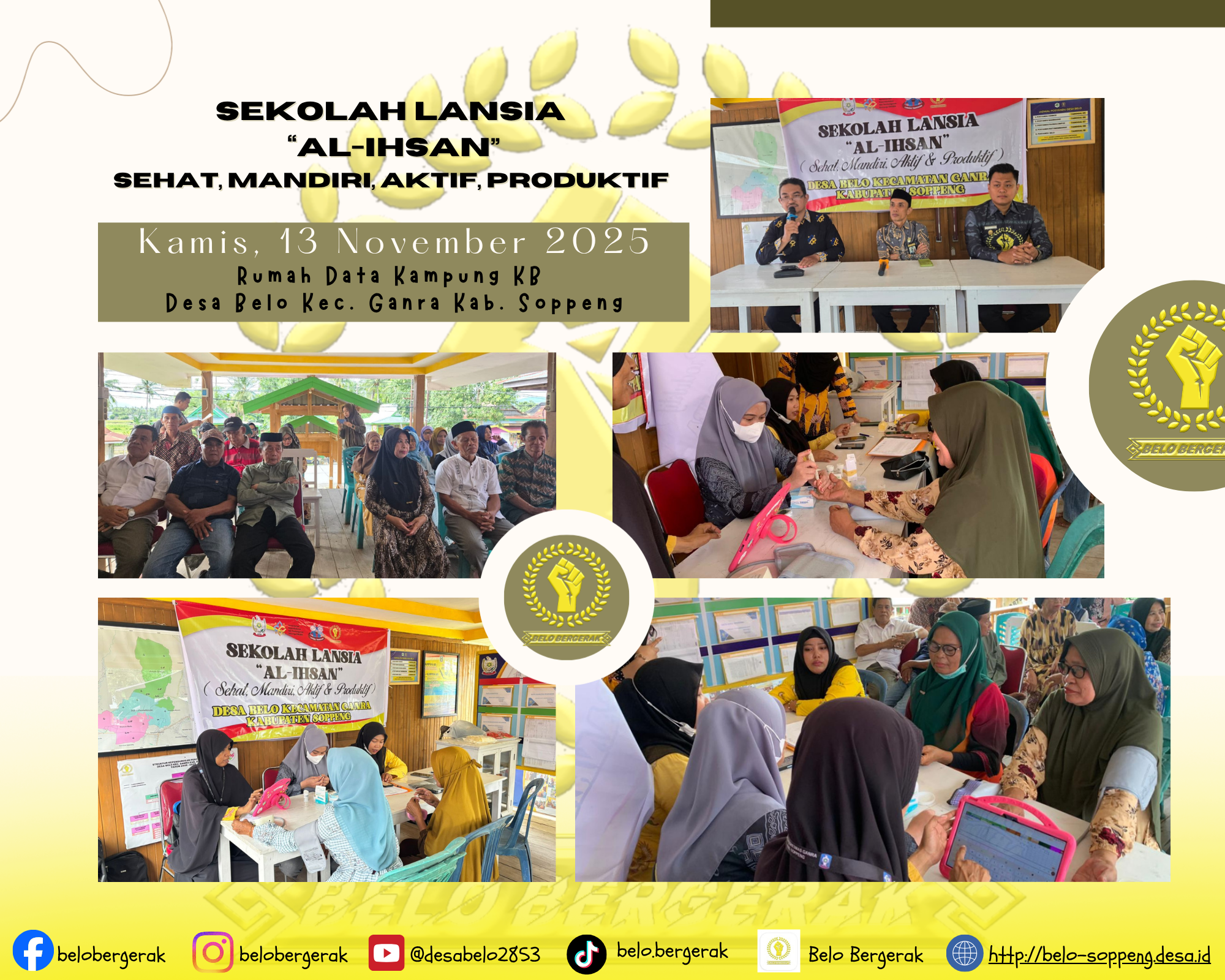 Program Sekolah Lansia Al-Ihsan Desa Belo sendiri merupakan salah satu inovasi sosial Pemerintah Desa Belo yang bekerja sama dengan Puskesmas Ganra dan berbagai pihak terkait. Program ini bertujuan untuk meningkatkan kualitas hidup lanjut usia melalui kegiatan belajar bersama, pembinaan spiritual, sosial, dan kesehatan, agar para lansia tetap bisa berperan aktif di tengah masyarakat.